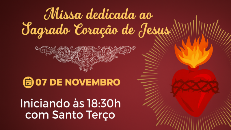 1ª sexta feira do mês: 19hs (Missa do Sagrado Coração de Jesus)